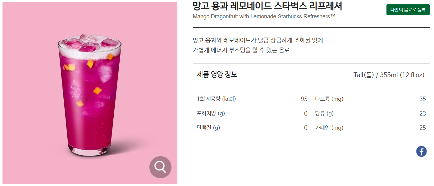망고 용과 레모네이드뿐만 아니라 퍼플 드링크 위드 망고 용과 스타벅스 리프레셔도 많이 드시는데 이 음료도 다음에 맛봐야겠습니다.ㅎㅎㅎ