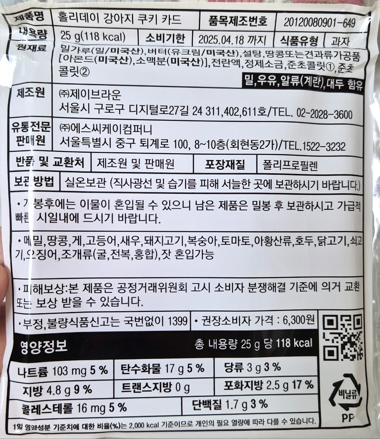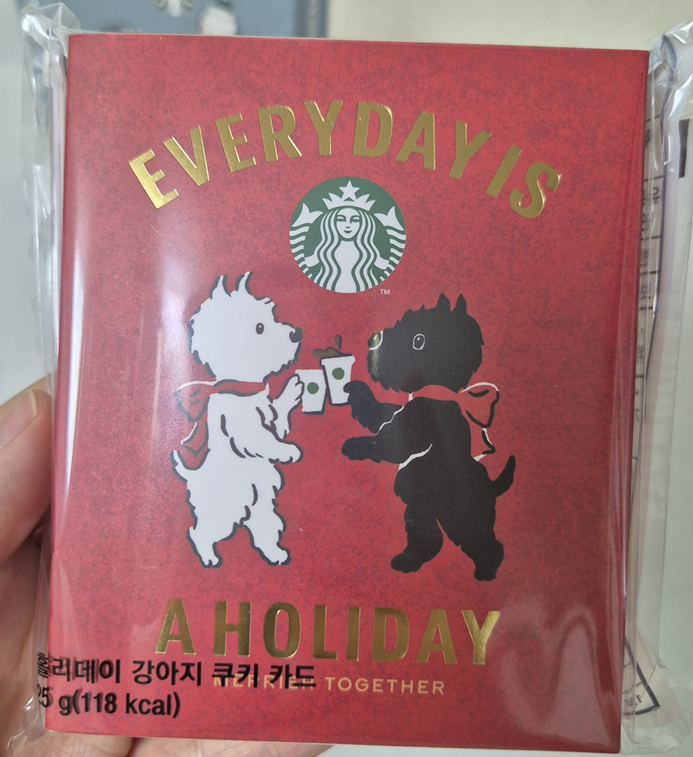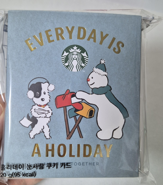 홀리데이 강아지 쿠키 카드는 눈사람 쿠키보다 칼로리가 살짝 높아요. 눈사람보다 5g 정도 많은 내용량이라 그런 것 같습니다. ㅎㅎㅎ