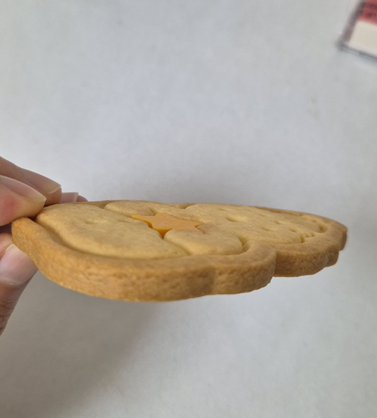 쿠키는 손가락 마디 정도의 길이로 많이 크지는 않습니다. 두께는 꽤 두껍고 단단해서 치아를 조심해야 할 것 같습니다. 우리가 알고 있는 버터 쿠키의 맛으로 버터 향이 정말 강합니다. 거기에 견과류에 가까운 고소한 향이 섞여서 입맛을 돋우는 쿠키였어요. 저는 지금 치과를 다니는 중이라 우유에 녹여 먹었는데 우유하고도 정말 잘 어울리는 맛이었습니다.