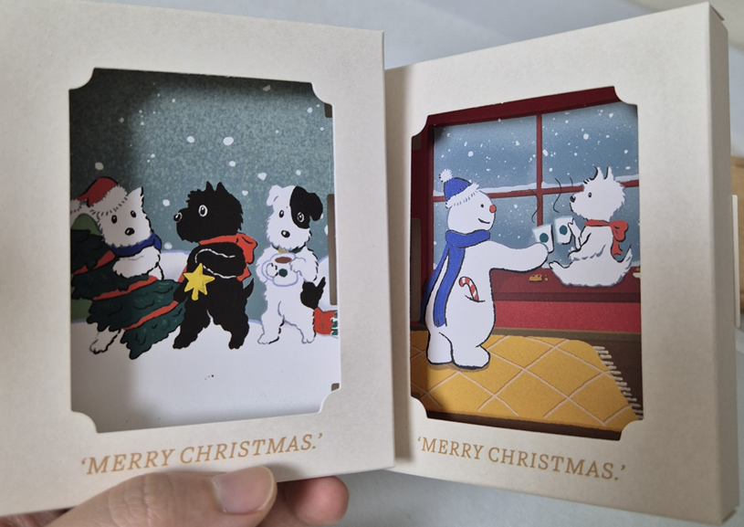 홀리데이 강아지 쿠키 카드는 앞에 강아지 두 마리가 티 타임을 하는 것 빼고는 눈사람 패키지와 같습니다. ㅎ