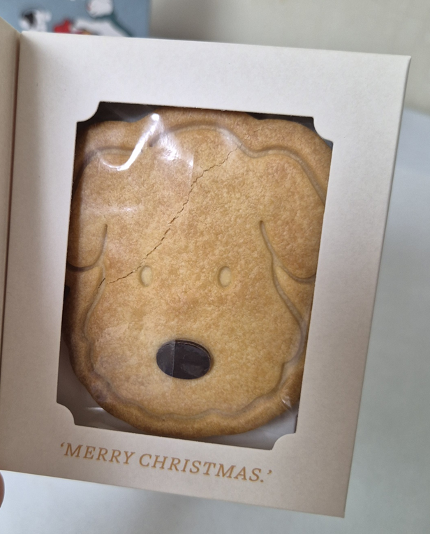 눈사람 쿠키와 강아지 쿠키의 맛은 다르지 않습니다. 고소한 향과 버터향이 섞인 조금 딱딱한 정도의 쿠키인데 드셔 보시면 익숙하실 것 같다는 생각이 듭니다.