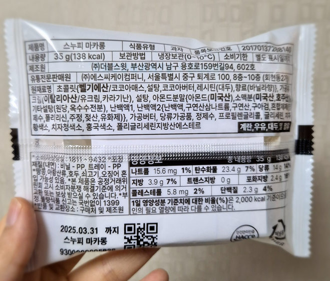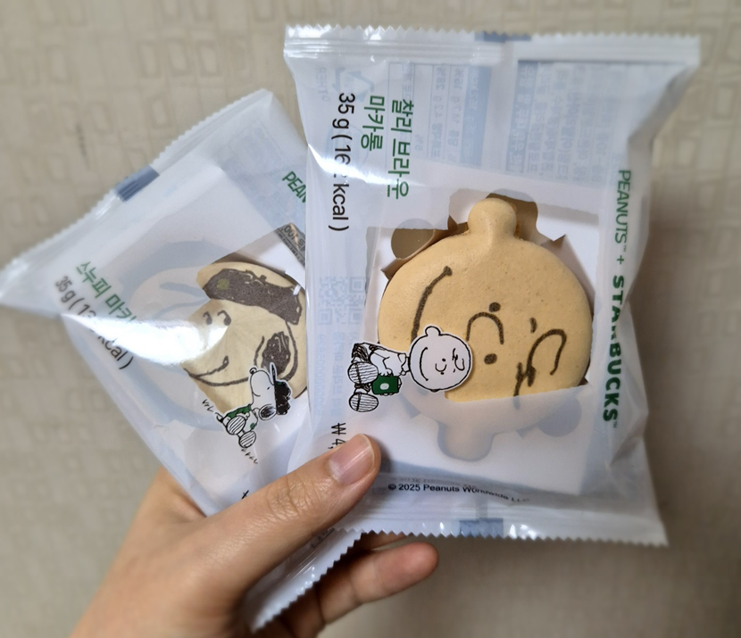 스누피 마카롱보다 찰리 브라운 마카롱이 내용량은 같아도 칼로리가 살짝 더 높네요!