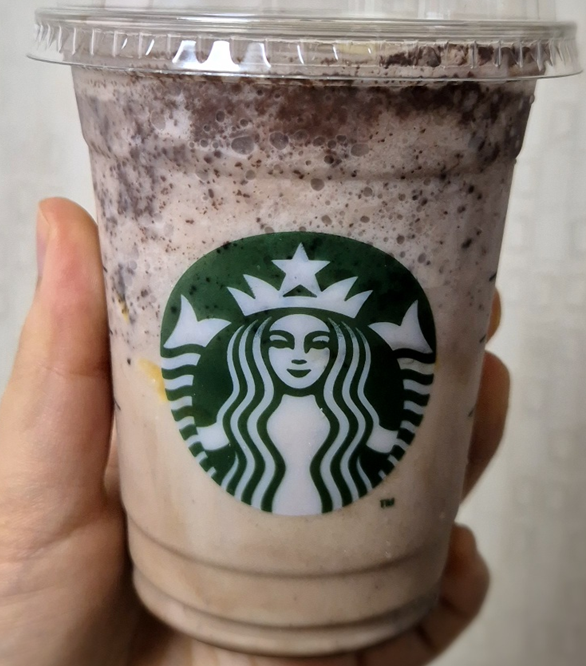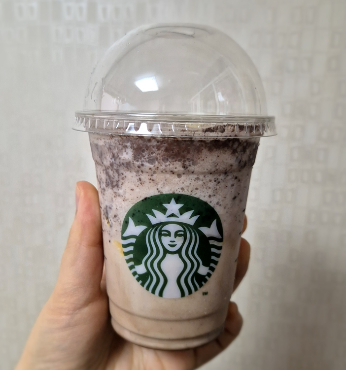 컵에 초코 드리즐과 카라멜 드리즐이 묻어 있어서 골고루 섞어 마셔야 합니다. 휘핑 크림을 빼서 그런지 생각보다 너무 달지는 않았는데 카라멜 맛이 가끔씩 확! 올라와서 너무 달다는 느낌이 그때 들었어요. 기본적으로 그냥 초코우유를 얼렸다 녹여 먹는 맛 같았습니다.