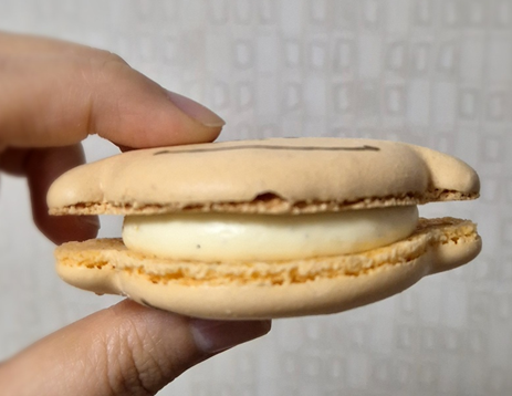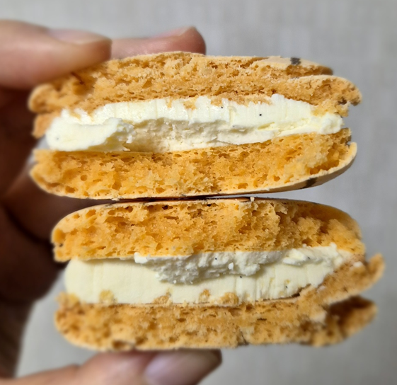 스누피 마카롱과 마찬가지로 두께는 일반 마카롱보다 살짝 더 많은 정도입니다. 반으로 잘라 보면 스누피 마카롱보다 살짝 수분감은 없어 보였어요. 그래도 익히 알고 있는 바삭하면서 쫀쫀한 식감은 찰리 브라운 마카롱이 더 좋았던 것 같습니다. 그리고 바닐라 크림이 필링으로 들어가 있어서 살짝 느끼했지만 스누피 마카롱보다는 먹을만했어요.ㅎ