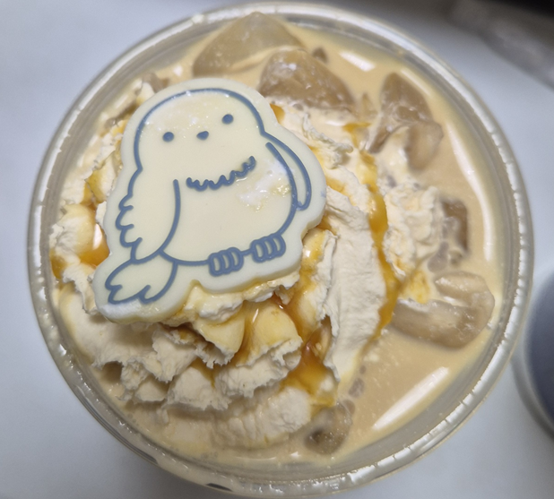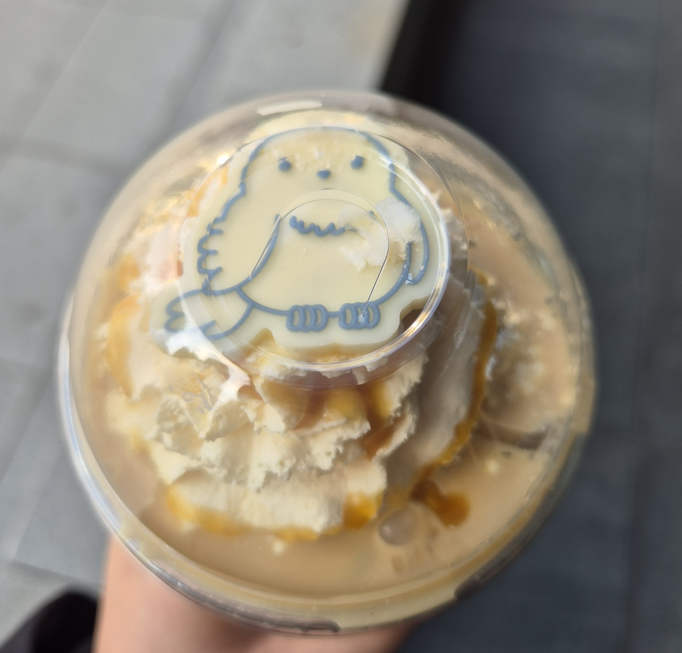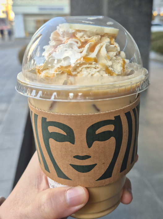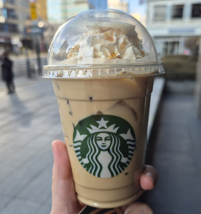 캬라멜 마키아또와 비슷한 맛인데 마시다 보면 바닐라 라떼의 맛도 느껴지더라고요! 맛있는 두 라떼가 적절하게 섞여 만들어진 맛있는 맛있었습니다. ㅎㅎ 많이 다니까 단 걸 걱정하신다면 드리즐이나 휘핑 크림 조절을 하셔야 할 것 같아요!