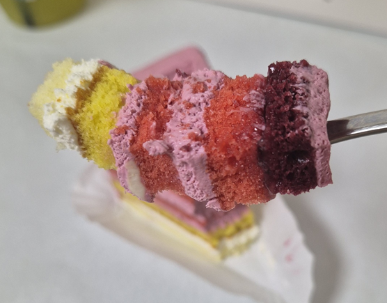 게다가 위에 딸기잼이 있어 더 신맛만 강했습니다! 해그리드 케이크는 먹을만했지만... 이 케이크는 정말 호불호가 많이 있을 거 같아요.. SNS에서도 이 케이크는 실망이라는 말이 꽤 있더라고요! 사실 저는 먹다가 포크를 내려놨습니다..