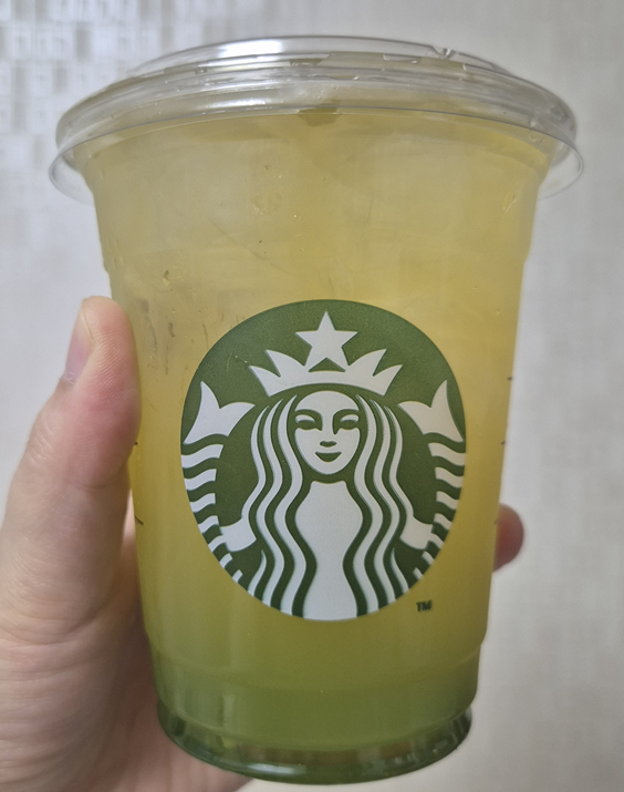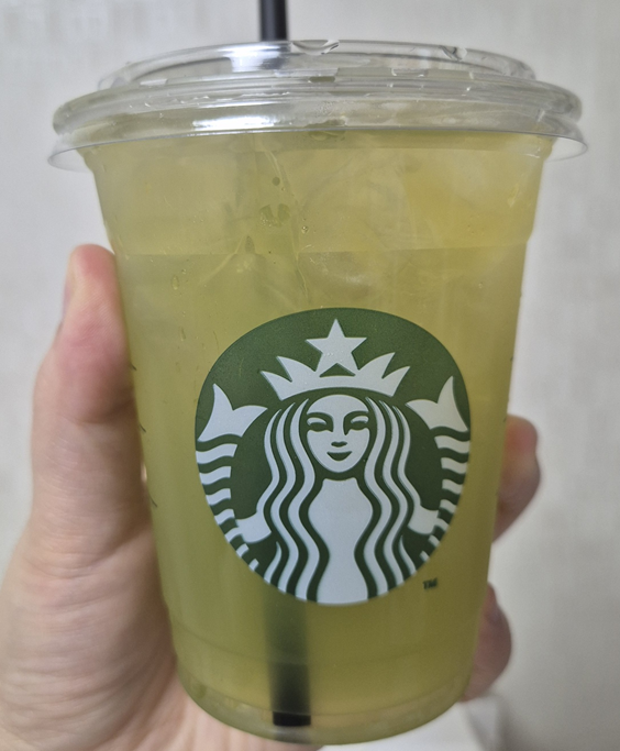 2025년 지혜로운 뱀의 해를 맞이해서 나온 슬리데린 기숙사 콘셉트의 티음료입니다! 매실과 그린티가 기본으로 되어 있어요! 스타벅스 자체에서 스트러스 백을 개발했다고 하더라고요! 그래서 초록색 빛이 번져 은은한 색을 보입니다. ㅎㅎ