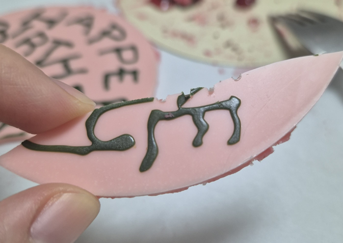 비닐을 떼면 버터크림이 덩어리로 떨어져요.ㅎㅎ 케이크 기둥도 크림이 떨어지고, 케이크 뚜껑을 뗄 때도 크림이 떨어져요! 크림을 안 좋아하신다면 과감하게 떼고, 크림 좋아하신다면 조심히 떼세요!ㅎㅎㅎ