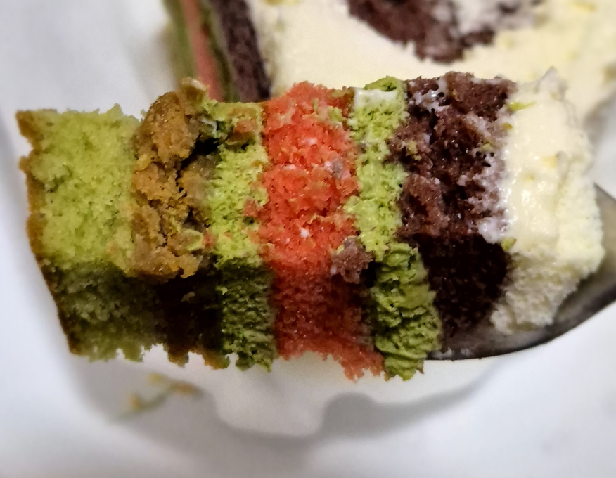 시트 사이사이에 피스타치오 무스가 발라져 있고 가장 밑 시트 위에 피스타치오가 씹히는 스프레드가 들어가 있든 것 같습니다. 딱딱하게 걸리는 이물감이 아니라 부드럽게 넘어갔어요.ㅎ