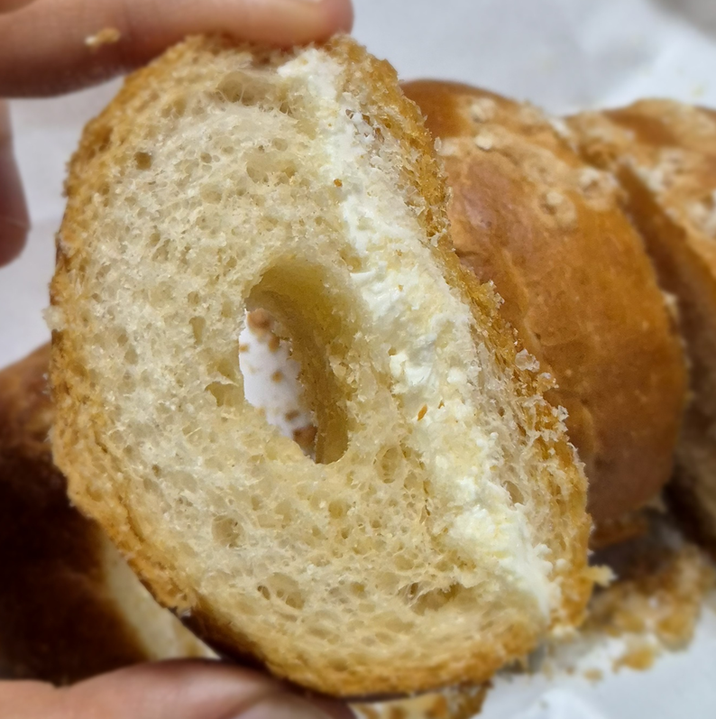 부드럽고 꾸덕한 크림 치즈가 한가득 들어 있습니다. 담백해서 바게트와 잘 어울리는 크림치즈예요.