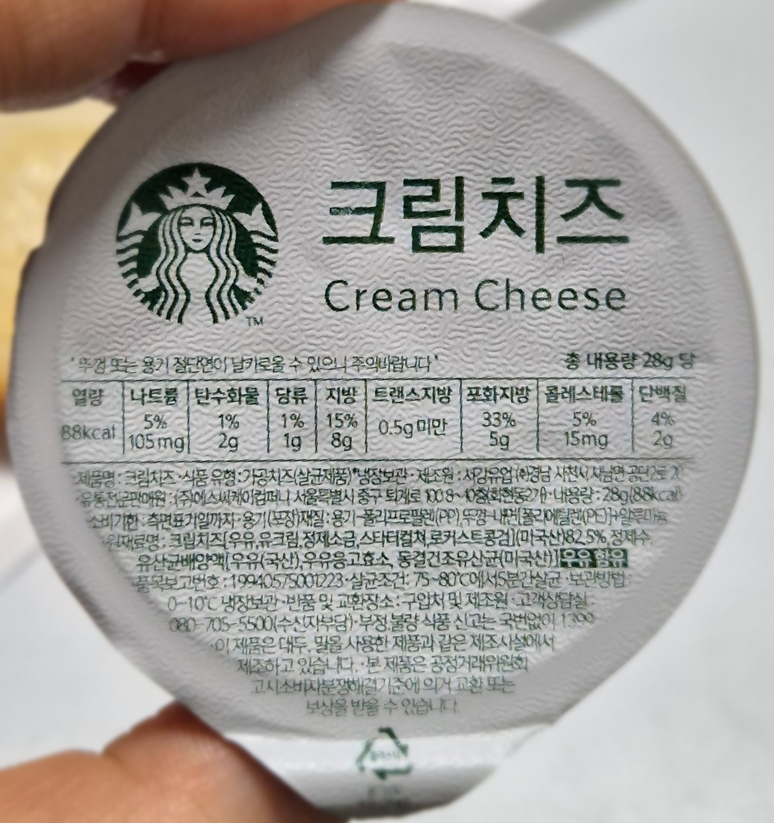 바게트가 딱딱할 것을 예상해 함께 구매한 크림치즈입니다.ㅎㅎ