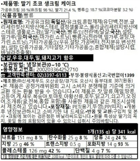 가장 먹어고보 싶던 딸기 초코 생크림 케이크입니다.ㅎ1월 말에 새로 나온 케이크인데 드디어 만났습니다.ㅎㅎ 칼로리는 341칼로리로 초코 케이크치곤 적당한(?) 열량인 것 같아요.ㅎㅎ