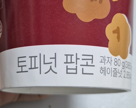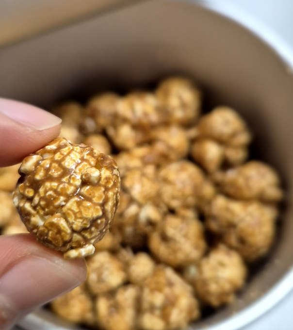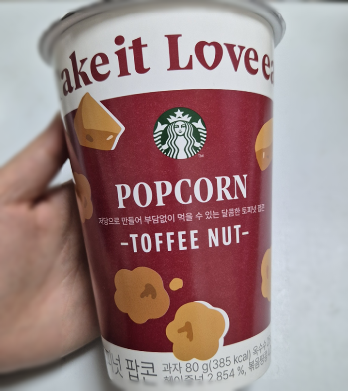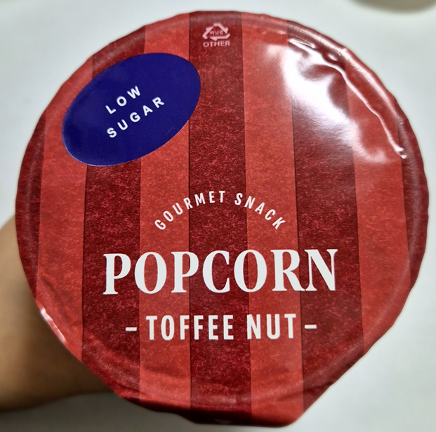 저당 팝콘으로 만들어진 토피넛 팝콘입니다. 팝콘을 저당으로 먹을 수 있다니 그나마 다행인 거 같네요.ㅎㅎㅎ