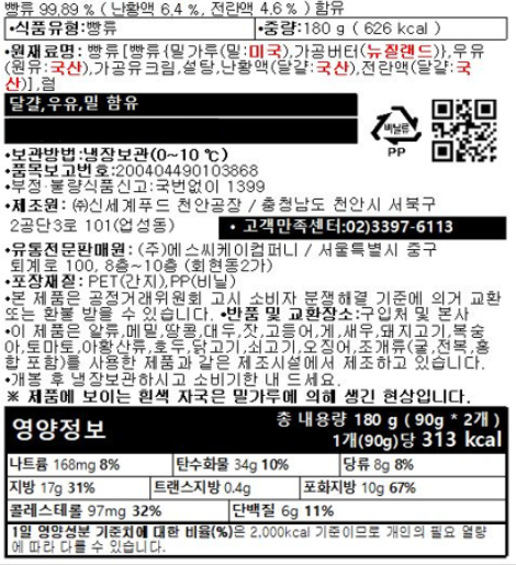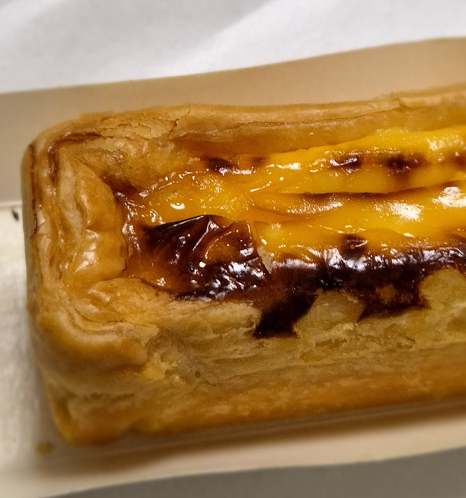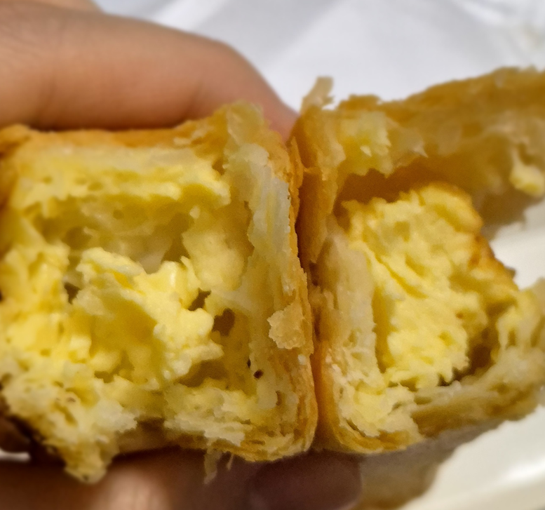긴 모양의 겹겹으로 구워진 페스추리 안에 에그 필링이 가득 들어가 먹음직스럽게 구워져 있습니다.ㅎㅎ