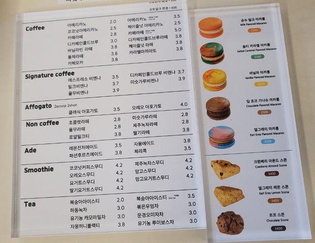 메뉴도 깔끔하게 되어 있습니다. ㅎㅎ 디저트 종류들 누끼는 어떻게 땄을까 괜한 궁금이 밀려오네요.ㅎㅎ 학교 근처라 그런지 정말 저렴하더라고요!ㅎㅎ 요즘 2,000원 대 메뉴 찾기 어려운데 5,000원이 넘는 메뉴가 없었어요!ㅎㅎ
