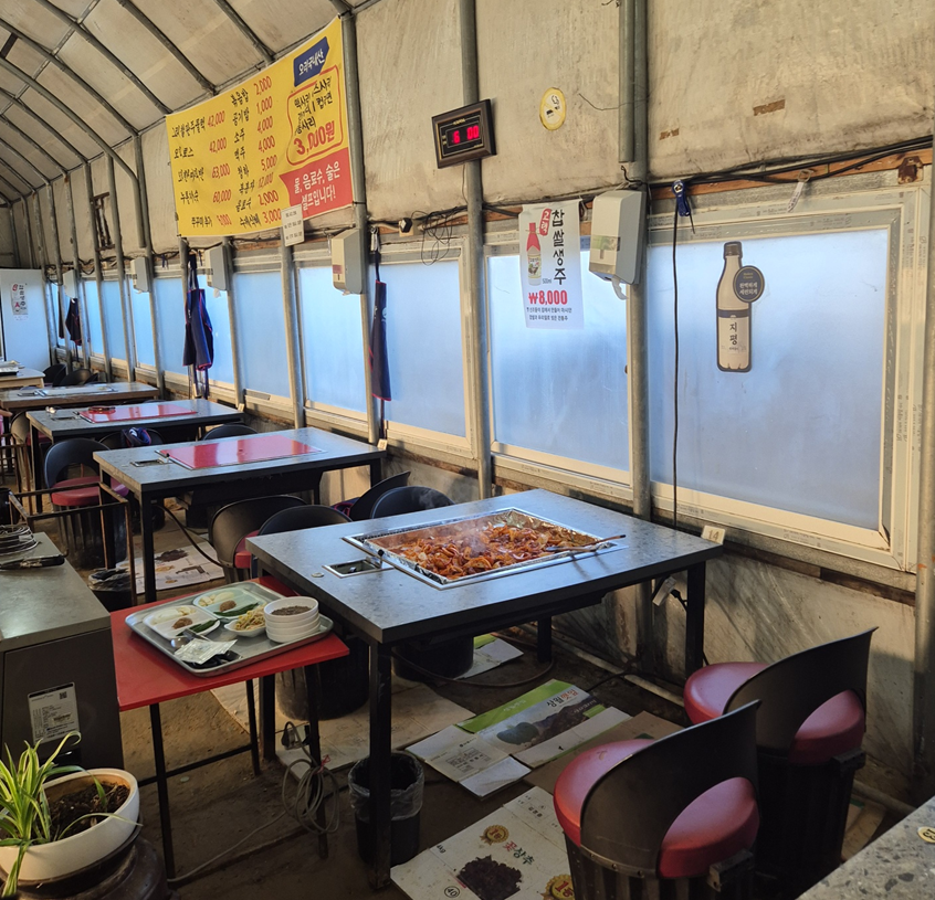 이런 구조물에서도 식당 운영이 되는 게 신기했어요.ㅎㅎ 상당히 오래되어 보이고 식당이 맞나 하는 의심까지 들었습니다.ㅎㅎㅎ 원조 맛집이라는 입간판이 식당이라는 걸 증명하는 듯했습니다.ㅎ