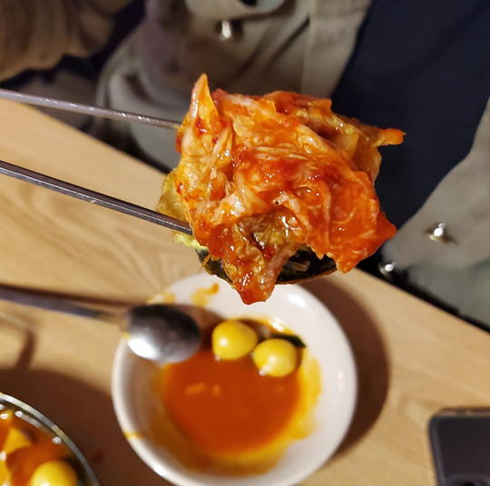 어묵탕이 다 먹어갈 때쯤에 김밥전이 나옵니다. ㅎㅎ 어릴 때 소풍 다녀오면 다음 날 아침 메뉴는 늘 김밥 전이었던 거 다들 공감되지 않으신가요?ㅎㅎㅎ 저희 엄마도 냉장고에 김밥이 있으면 늘 김밥전을 해주셨는데,ㅎㅎ 그때의 그 맛이 기억나더군요.ㅎㅎ