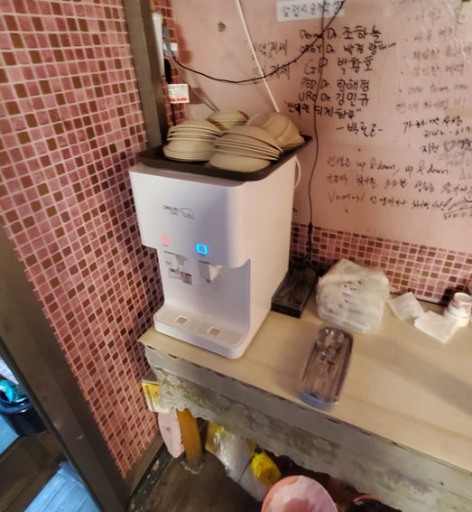 노포에서는 알코올이 국룰이라긴 하지만.. 저의 먹짝은 운전을 해야 했고, 저는 알코올 멍청이라 주류 대신 음료를 주문했어요.ㅎㅎ 저희 먹선생님은 소맥 대신 사콜을 섞으셔서 과료할 뻔했지 뭐예요..ㅎㅎ 술, 물, 음료는 셀프니 참고하세요!ㅎㅎ