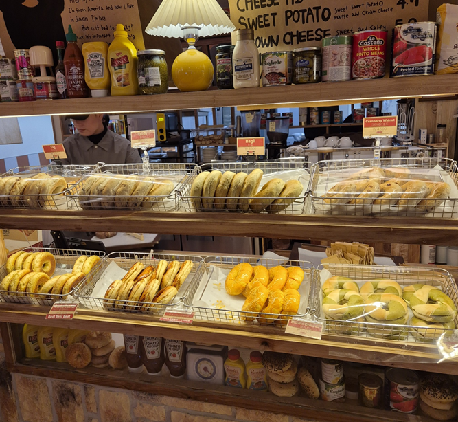 주문하는 곳 바로 옆에 셀프 리턴바가 있어 다 드신 것을 바로 가져다 둘 수 있습니다. 그리고 프렌치토스트 베이글도 판매하는데 베이글로 만든 프렌치토스트도 궁금하네요!