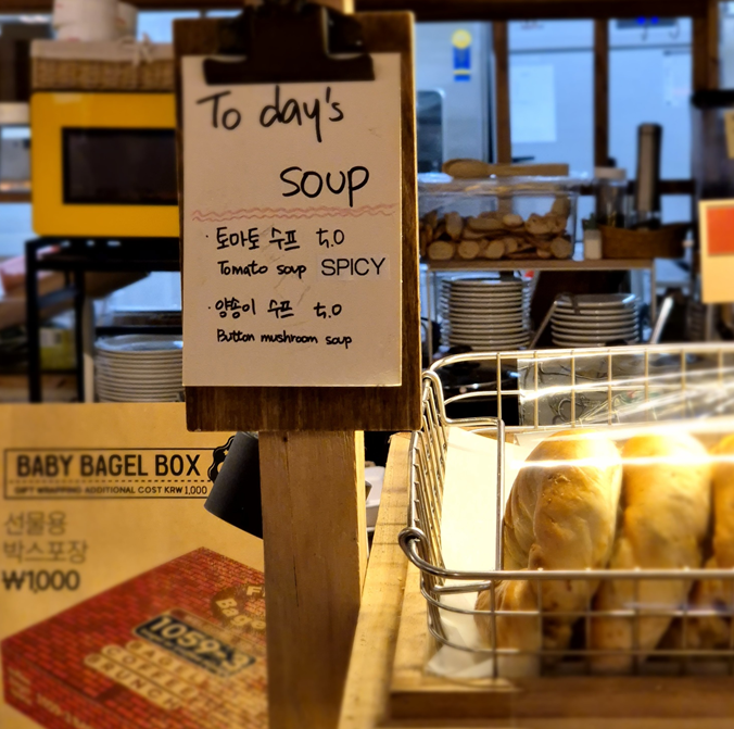 한쪽에 탐스러운 베이글이 한가득 있습니다! 많은 분들이 베이글을 열심히 고르고 계셨는데 사람이 없을 때 찍기 힘들었네요.ㅎㅎ