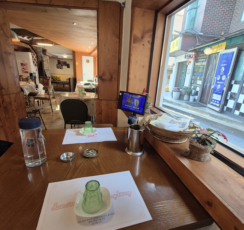 저희는 창가 쪽 한 켠에 자리를 잡았습니다. 테이블이 커서 메뉴 태블릿을 이용하기 어려웠어요.ㅎㅎ