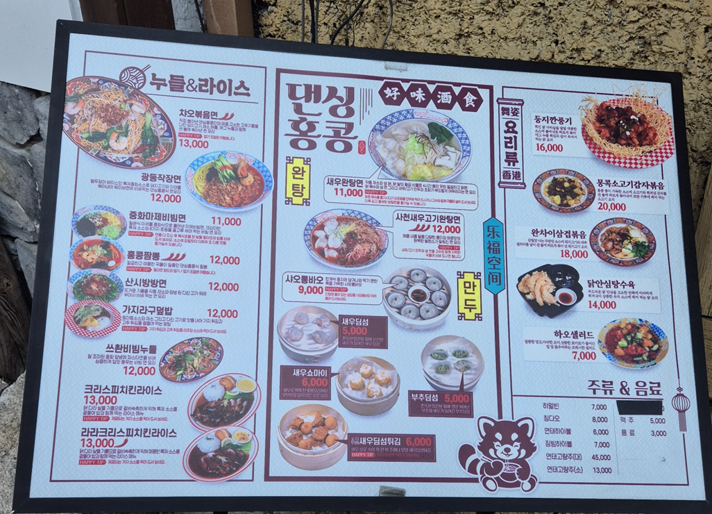 입구에 메뉴판이 있어 바로 메뉴 보고 바로 들어 갔습니다. ㅎㅎ 챠오볶음면과 새우완탕면을 먹기로 했어요.ㅎㅎ