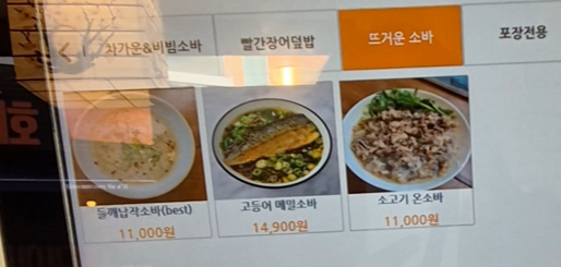 1. 들깨납작소바: 11,000원