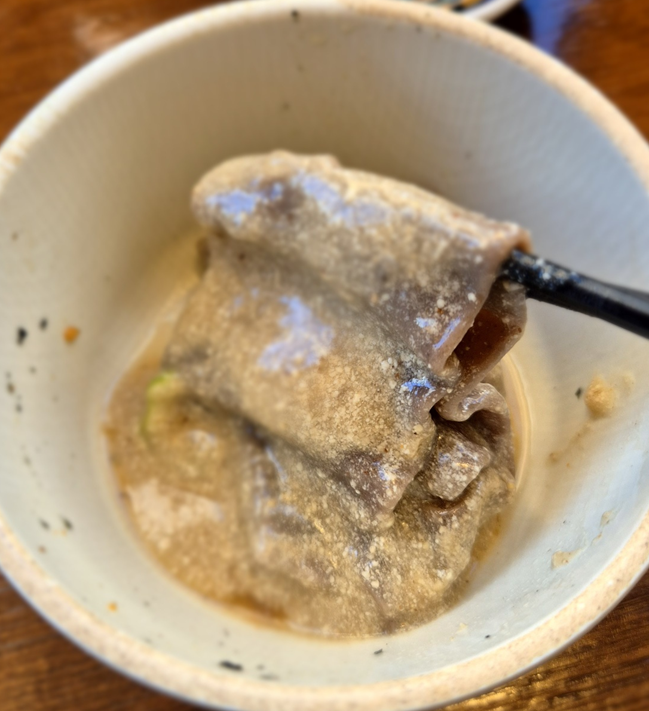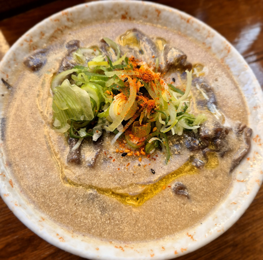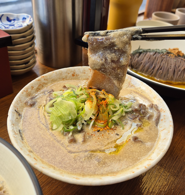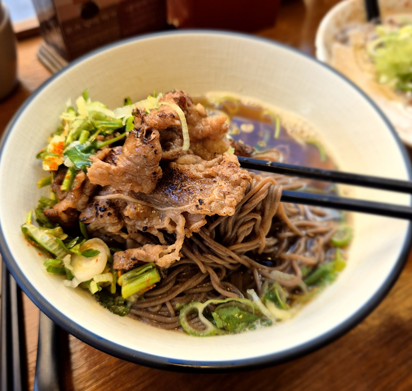 덩어리가 꽤 큰 소고기가 정말 많이 들어가 있었어요.ㅎㅎ 세 명이 먹었음에도 고기가 계속 나왔습니다.ㅎㅎ 달달하니 짭쪼름한 고기 국물에 가장 기본으로 먹기 편한 메뉴였습니다.ㅎㅎ 고기도 질기지 않았고 숯불향이 입 안에서 퍼지면서 담백한 소바와 잘 어울렸습니다.ㅎㅎ