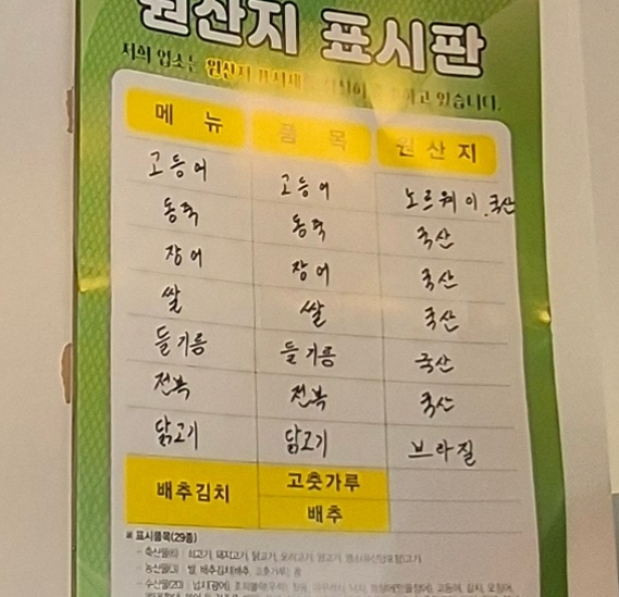 대부분 국산을 사용하시고, 닭은 역시 브라질에서 오네요.ㅎㅎ