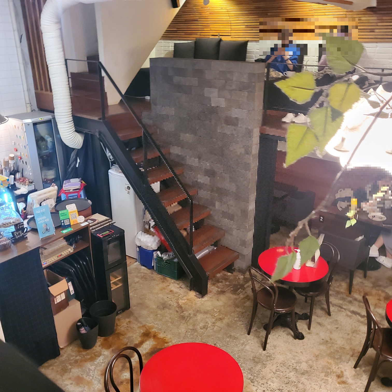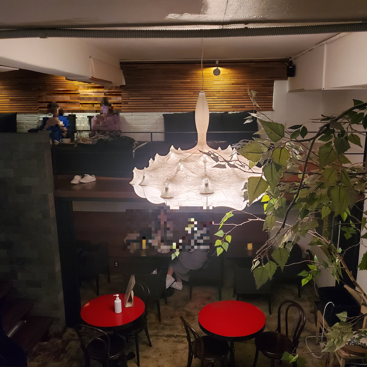 저는 문 앞 복층 자리에 자리를 잡았습니다! 비밀 아지트 같다는 말이 바로 이렇게 복층으로 이루어져 있어서 일행과 편하게 대화하기도 좋고, 시간 보내기도 좋더라고요!