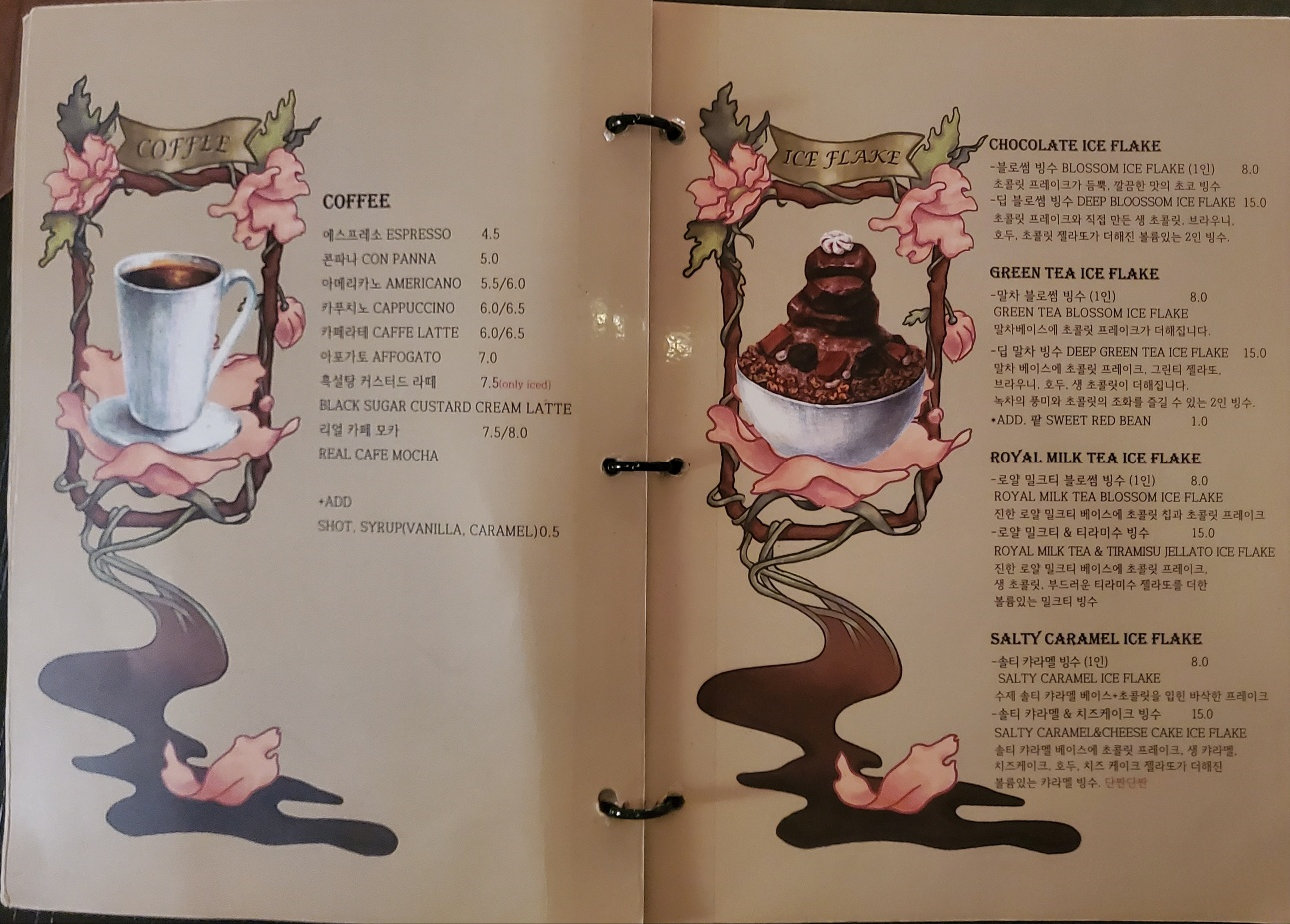 정말 다양한 메뉴가 있고, 꼼꼼하게 설명까지 주셔서 메뉴 고르는 데 어려움이 없었습니다!ㅎㅎ 저는 친구와 함께 딥 블로썸 빙수를 주문했어요! 초코가 묻은 플레이크와 생 초콜릿, 브라우니, 초콜릿 젤라또라니 얘기만 들어도 입안에 다네요.ㅎㅎ