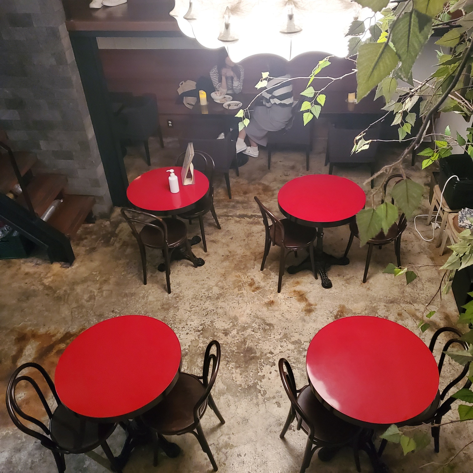 제가 앉은 자리에서 바라본 카페 내부는 이렇습니다! 저층에 테이블이 놓여있고, 복층과 함께 이용할 수 있는 구조입니다. ㅎㅎ 복층 자리라는 게 괜한 설레는 기분을 주는 것 같아요! 안락하고, 공적이면서 사적인 공간으로 분리된 것 같은 느낌에 어느 정도 필요한 긴장감과 편안함이 공존하게 되어 매력적이라 생각이 들어요.ㅎㅎ 물론 공공장소이기 때문에 남들에게 불편한 행동을 주면 안 되지만 남들 신경 쓰지 않고 편히 실 수 있는 특별한 공간같이 느껴져 복층 자리를 좋아한답니다. ㅎㅎ