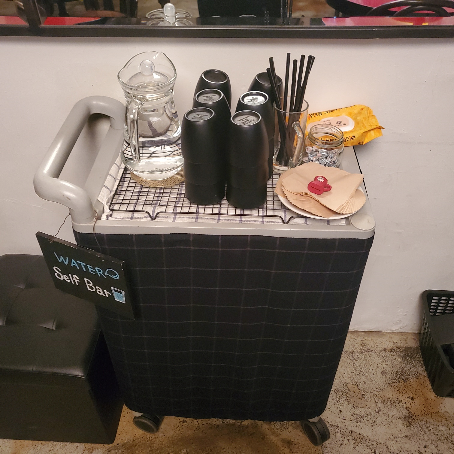 담요나 여분 방석도 준비되어 있어 필요하실 때 이용하면 되고, 셀프바도 있으니 이용에 참고하세요~