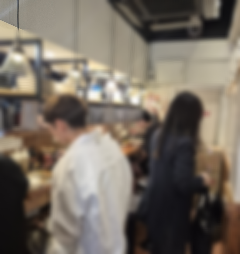 식당 내부가 좁아 테이블이 넉넉하지 않기 때문에 키오스크를 통해 먼저 주문한 후에 직원의 안내를 따라 입장하면 됩니다. 이치란 라면 식당처럼 바테이블이 있는데 L자로 되어 있어서 많은 인원이 들어갈 순 없었어요. 하지만 계속 테이블은 만석이었습니다.
