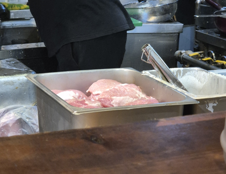 주문은 미리 되어 있어서 금방 요리가 나오는데 바로 눈앞에서 돈가스를 튀기는 게 보였습니다. 순서를 기다리는 중에 봤는데 삼다수 도야지라는 냉동 트럭에서 고기가 들어왔는데 정말 제주산 돼지를 사용하는 것 같아요.ㅎ