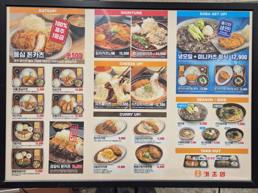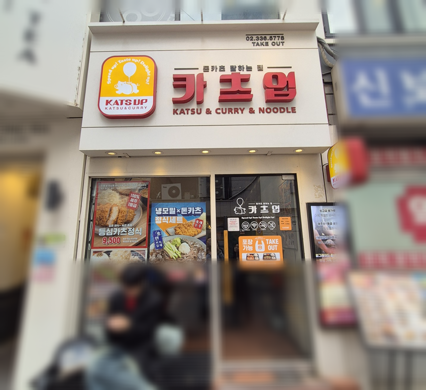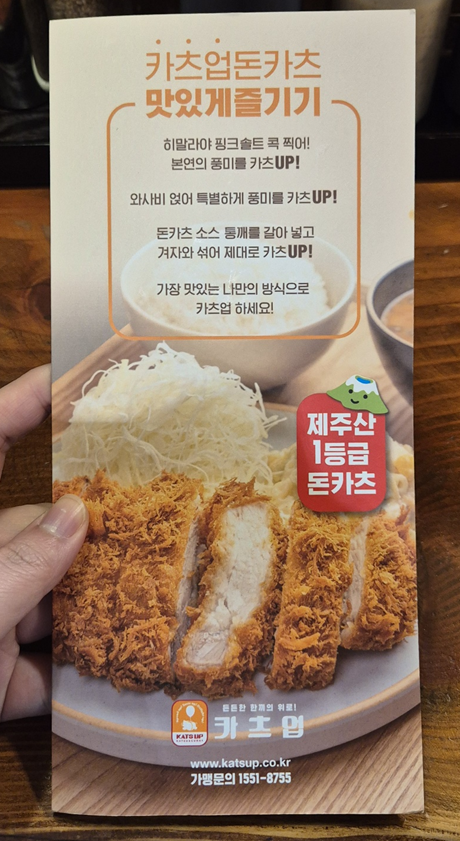 퇴근하면서 동료 선생님과 함께 식사하게 되어 방문하게 된 카츠업입니다. 작은 식당인데 손님이 끊임없이 들어오더라고요. 현대백화점 바로 옆에 있어서 찾기 어렵지는 않았습니다.