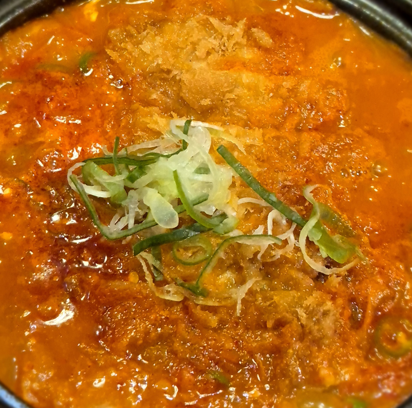돈가스는 이미 국물에 젖어 바삭한 맛은 크게 느껴지지 않아요. 하지만 두툼한 고기가 들어가 있는데 질기지 않고 고기 냄새가 나지 않았습니다. 그리고 김치의 곳곳에 튀김 가루가 바삭하기 씹히는 맛이 전혀 없지는 않았어요. 느끼할 때쯤이면 김치와 함께 먹으면 개운하고 얼큰하게 먹을 수 있었습니다.