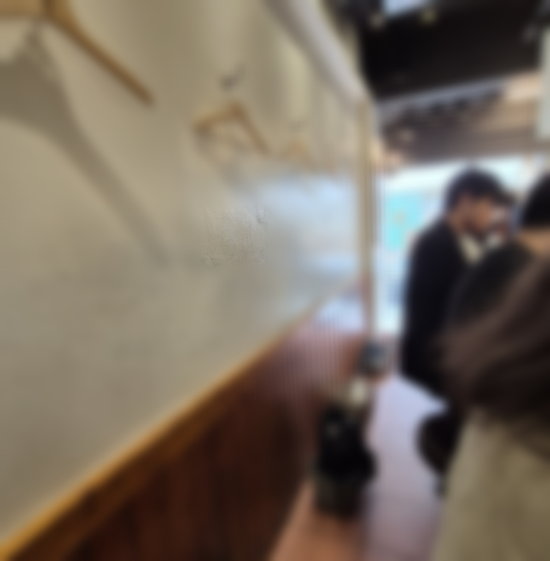 식당 내부가 좁아 테이블이 넉넉하지 않기 때문에 키오스크를 통해 먼저 주문한 후에 직원의 안내를 따라 입장하면 됩니다. 이치란 라면 식당처럼 바테이블이 있는데 L자로 되어 있어서 많은 인원이 들어갈 순 없었어요. 하지만 계속 테이블은 만석이었습니다.