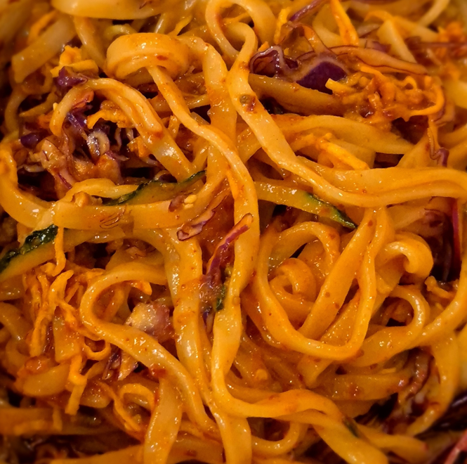 고명들을 살살 비벼주면 두툼한 칼국수 면 위에 올라간 빨간 양념소스가 나옵니다. 칼국수 면이 촉촉하고 정말 탱글탱글하더라고요!