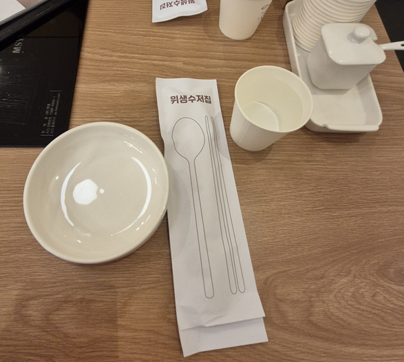 자리에 앉으면 앞접시와 수저를 가져다 주십니다. 앞치마도 말씀드리면 가져다 주세요!