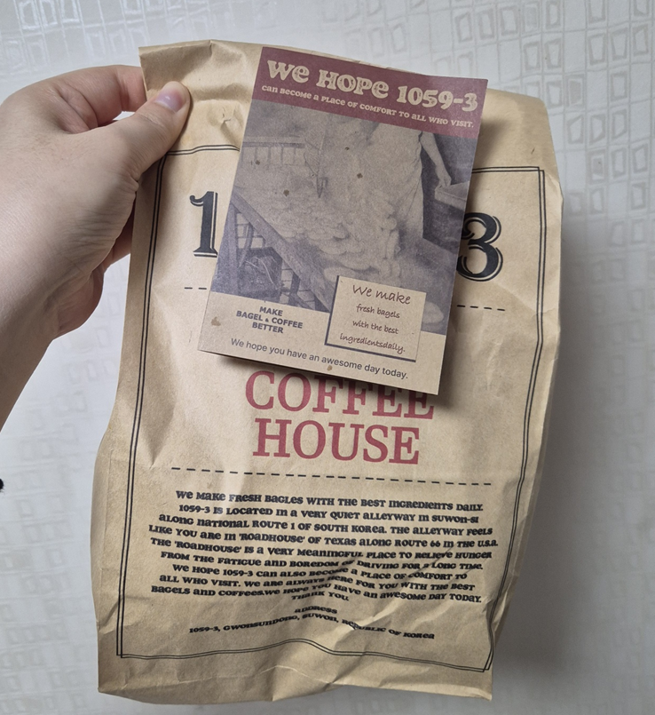 봄비가 추적추적 내리던 갑자기 다녀오게 된 1059-3 베이글 커피 하우스입니다. 런던베이글 다녀온 이후로 베이글에 빠져서 계속 생각하며 살다가 출퇴근길마다 만나는 1059-3 베이글 커피 하우스에 냉큼 들어가게 되었어요. 이미 이전에 연어샌드위치랑 수원 망고 빙수 후기도 올렸던 곳이지만 새롭게 먹은 베이글들이라 후기를 가져오게 되었어요.