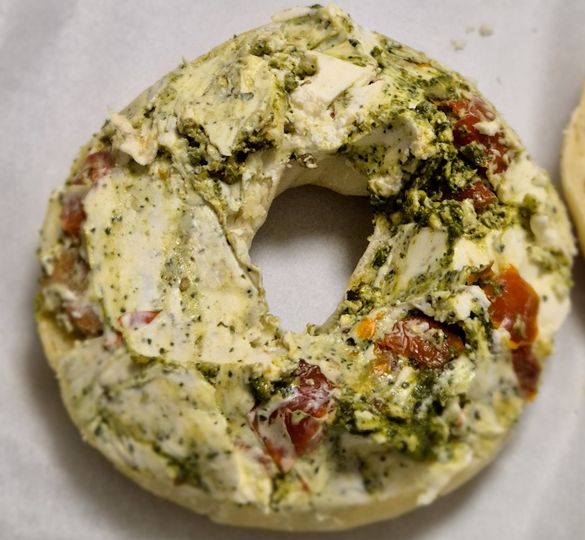 소금버터 베이글은 고소하고 약간 기름진 맛이 강했어요. 아무래도 버터가 들어가서 그런듯합니다.ㅎㅎ 토마토바질 크림치즈가 발라져서 상큼함이 더해져 먹기 더 편했던 것 같아요. 토마토와 바질 향이 너무 과하지 않고 적절히 어우러져 조합이 좋았던 것 같습니다. ㅎㅎ