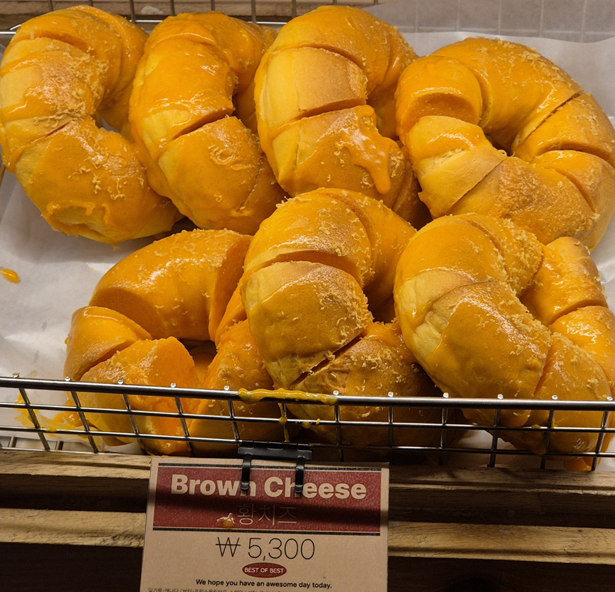 정말 먹어 보고 싶었던 황치즈 베이글입니다. 5,300원이고 황치즈가 듬뿍 젖어 있는 베이글이에요.