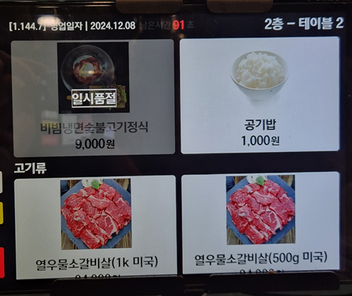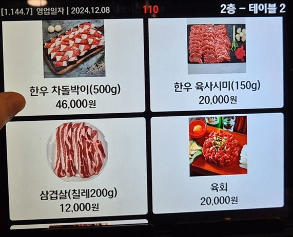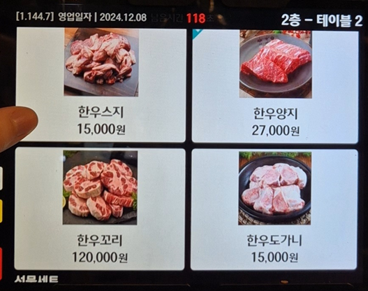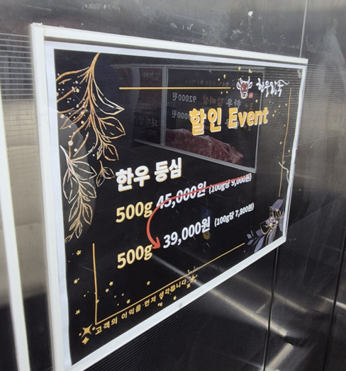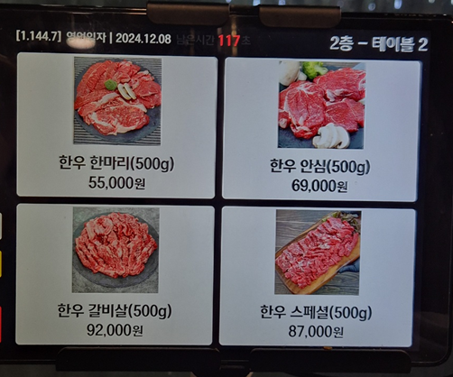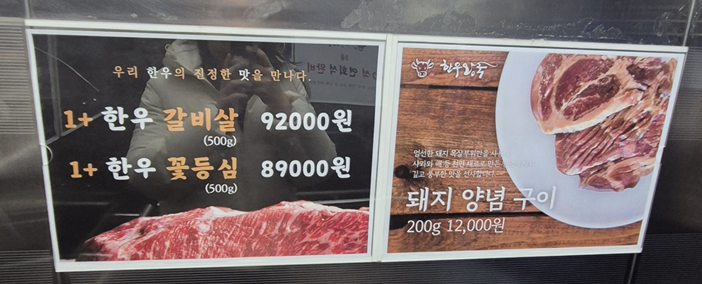 그리고 1층 정육 코너 메뉴도 있습니다. 고기를 먹다가 추가 주문 시 이용하면 될 것 같아요.