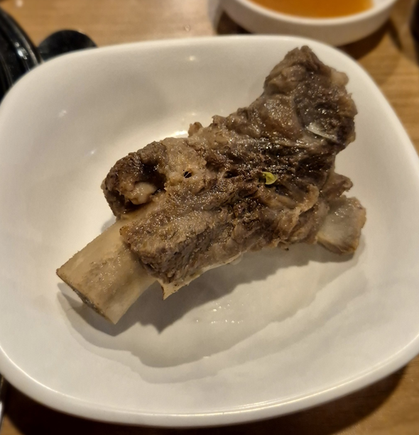 정신없이 먹느라 뼈대를 못 찍었더라고요!ㅎㅎㅎ 가장 작은 뼈의 크기입니다. 기호에 맞게 함께 나오는 소스에 찍어 먹으면 됩니다. 고기가 정말 놀라울 정도로 부드러웠습니다. 제가 지금 치과를 다니고 있어 고기나 질긴 것들은 못 먹는데 이곳갈비탕 고기는 정말 편하게 먹었어요.
