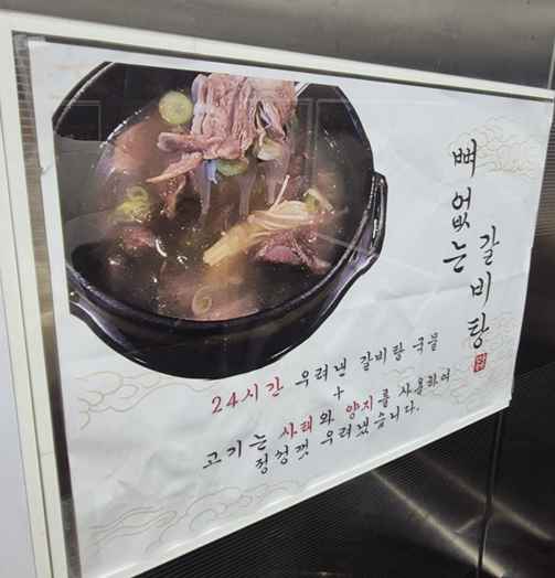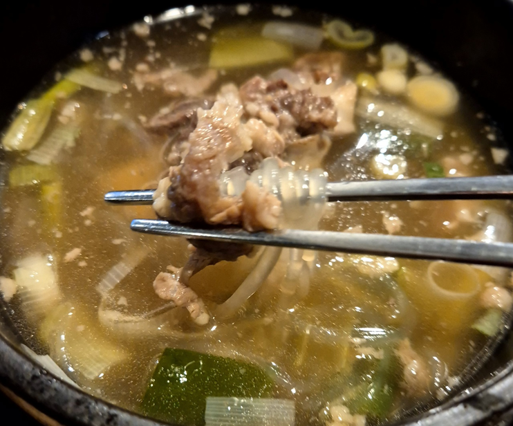그런데 왜 뼈 없는 갈비탕이 있는지 이유를 알겠더라고요! 고기가 너무 크다 보니 발라 먹는 게 정말 힘들었습니다.ㅎㅎ 고기를 먹으면서 다음에 또 오면 뼈 없는 갈비탕을 먹으리라 다짐을 했습니다 ㅎㅎ