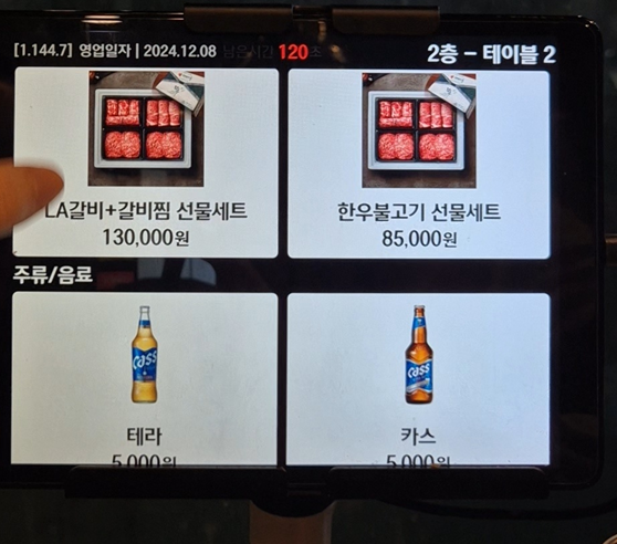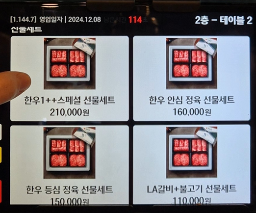 여기는 선물과 음료, 주류입니다. 선물 세트도 키오스크로 주문할 수 있어 편하네요. ㅎㅎ그리고 한우인데 생각보다 많이 비싸지 않아 놀랐습니다. ㅎㅎ