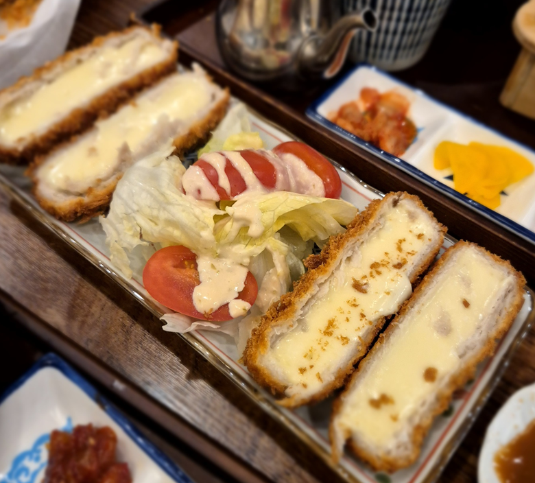 치즈 카츠는 치즈 가스 두 개를 반으로 잘라 4조각으로 나옵니다. 길쭉하게 나오는데 크기가 다소 작다고 느껴졌어요. 조금은 비싼 금액이라고 생각했습니다.
