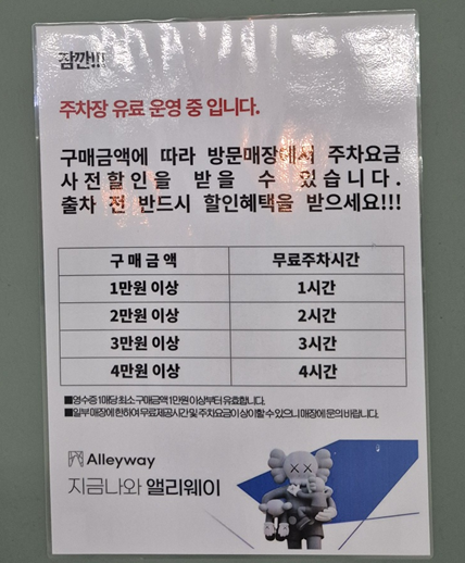 그리고 주차장은 유로 운영이니 꼭 방문한 매장에서 사전 할인받으세요! 참고로 담솥은 4시간 무료였습니다~