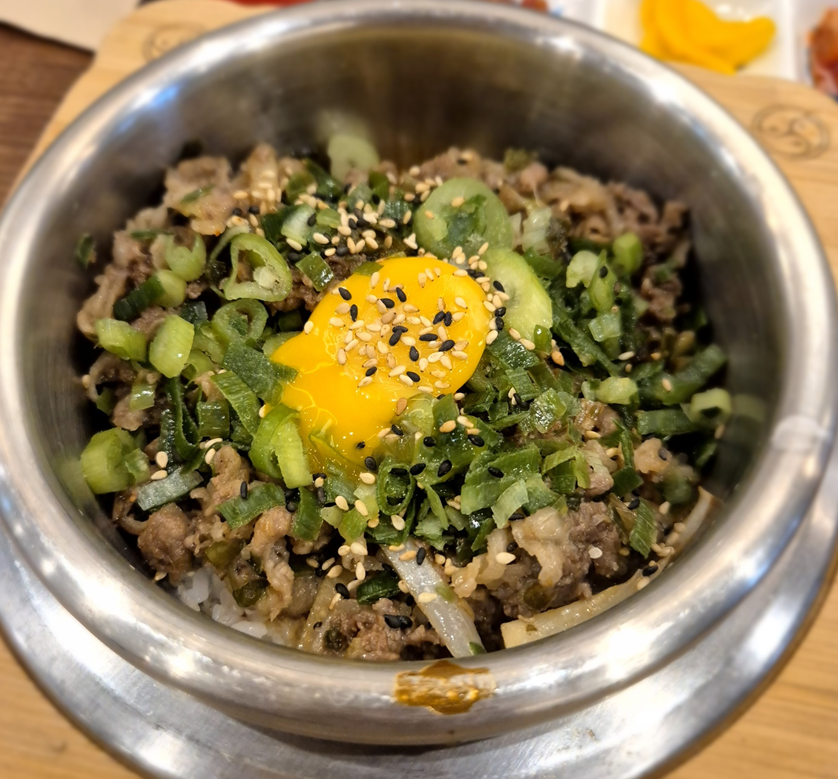 우삼겹 솥밥은 대리야끼 소스가 들어가 있는 달달한 맛입니다. 고기가 많이 들어가 있고, 쪽파의 향과 쌀밥의 조화가 좋습니다. 고기 기름이 있어 다소 느끼할 수 있지만 쪽파들이 느끼함을 잡아주었어요.ㅎㅎ 다만 데리야끼 소스의 맛이 강하다 보니 누룽지를 불려 먹었을 때는 어울리지 않았던 것 같습니다.
